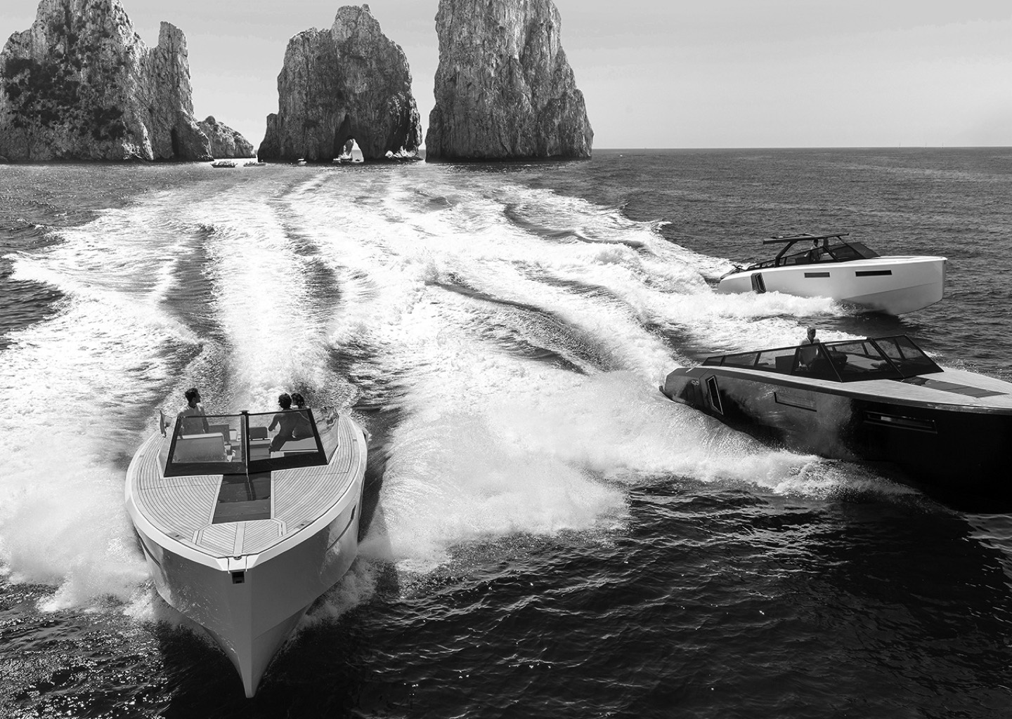 Evo CC, center consolle dallo stile aggressivo e filante, caratterizzato da un design originale e motori fuoribordo. Un open puro…