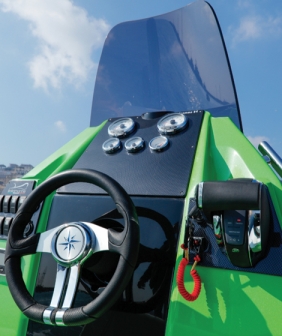 Il design accattivante del sedile di guida nasconde una cucina con lavabo ed un frigo. Un gommone ricco di spazio…