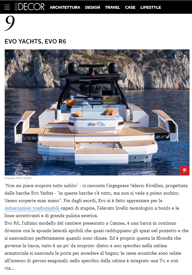 “Non mi piace scoprire tutto subito” – ci racconta l’ingegnere Valerio Rivellini, progettista delle barche Evo Yachts – “in queste barche c’è tutto, ma non si vede a primo acchito. Vanno scoperte man mano”.