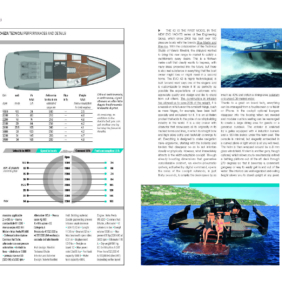 Al di la’ di essere stato colpito dall’originalità ed eleganza di questa imbarcazione vista a terra, il mio approccio con l’EVO 43 in acqua è pieno di curiosità. La prima domanda che pongo, maga­ri anche banale, è se può navigare anche con le murate aperte, magari per distrazione più che per una qualsivoglia ragione e la risposta è si, anche se ovviamente ad una velocità ridotta. I rumori a bordo sono stati “banditi” e la sala macchine per­fettamente lavorata ed isolata acusticamente per­mette di parlare ad un tono di voce normale an­che quando i motori sono a pieno regime di giri. L’altra grande qualità che si apprezza è che ai vari regimi di giri si avverte l’incremento di velocità solo tenendo sott’occhio la strumentazione, in quanto lo scafo non modifica assolutamente il proprio as­setto al variare del numero di giri ed all’incremento dei nodi. Il comfort è elevato e trovarsi ai comandi dell’EVO 43 produce una piacevolissima sensazio­ne, di controllo totale, di padronanza del mare, ma anche di enorme sicurezza e protezione per se e per l’equipaggio. Ideale anche per la famiglia con bimbi. I motori Volvo Penta Ips 600 da 435 caval­li ognuno garantiscono un top velocistico sui 34 nodi (il Cantiere dichiara che con carena appena pulita si toccano i 38 nodi), e mantengono un’au­tonomia media di oltre 200 miglia da percorrere con un pieno di carburante (1000 litri). Con i moto­ri a 2800 giri si ottiene il rapporto velocità/consumi più interessante, con quasi 26 nodi e 105 litri/ora, che salgono invece a 165 ogni ora a pieno regime di giri. Il deadrise di carena a poppa è di 18°.