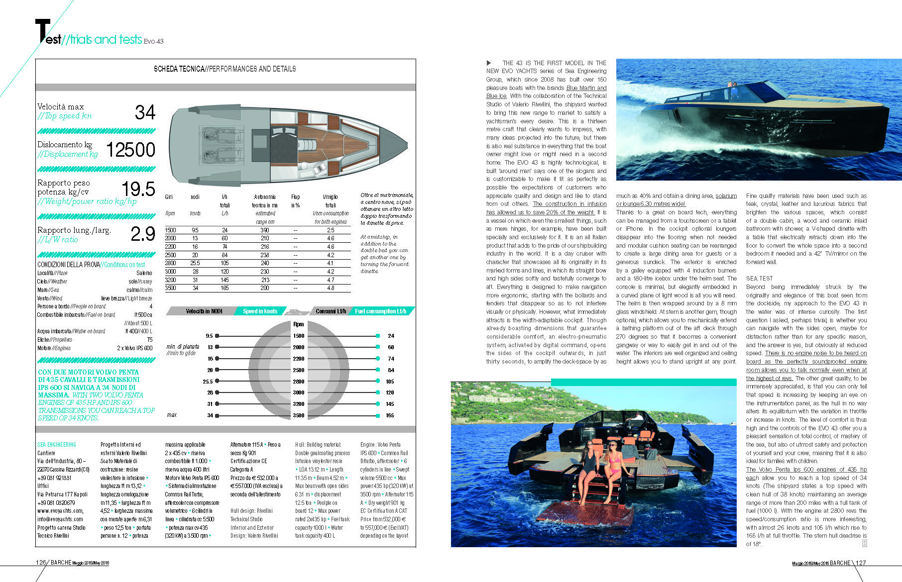 Trial and test di EVO 43 pubblicato su BARCHE (Maggio 2016)