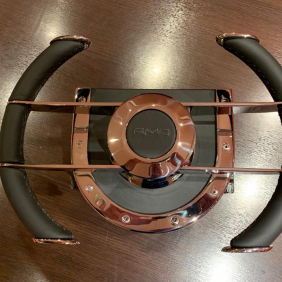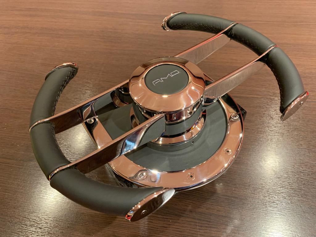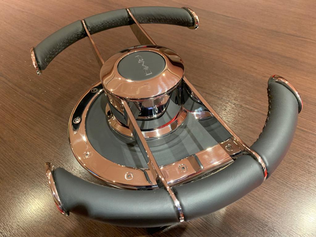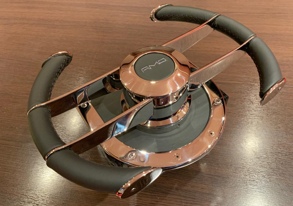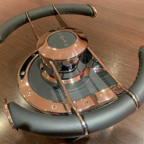 È dotato di un sistema di frizioni regolabili, che consentono di registrare la sensibilità del timone in fase di virata e imbardata. Parzialmente rivestito in pelle e ricavato dall’acciaio pieno, mediante fresatura al tornio a controllo numerico.